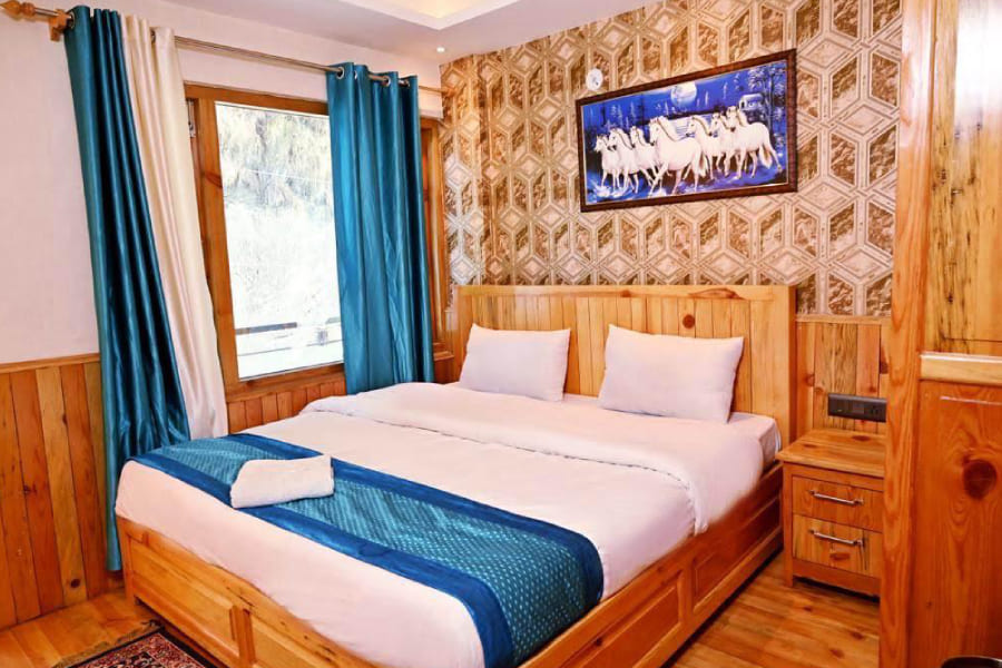 Experience elevated comfort in our Super Deluxe Room, where spacious elegance meets breathtaking Himalayan vistas. Featuring a plush king-sized bed, tasteful wooden furnishings, and contemporary accents, this room is designed for discerning travelers seeking extra space and luxury. Floor‑to‑ceiling windows flood the space with natural light and offer sweeping views of Almora’s verdant valleys and distant snow‑capped peaks, creating a serene backdrop for rest and relaxation.
